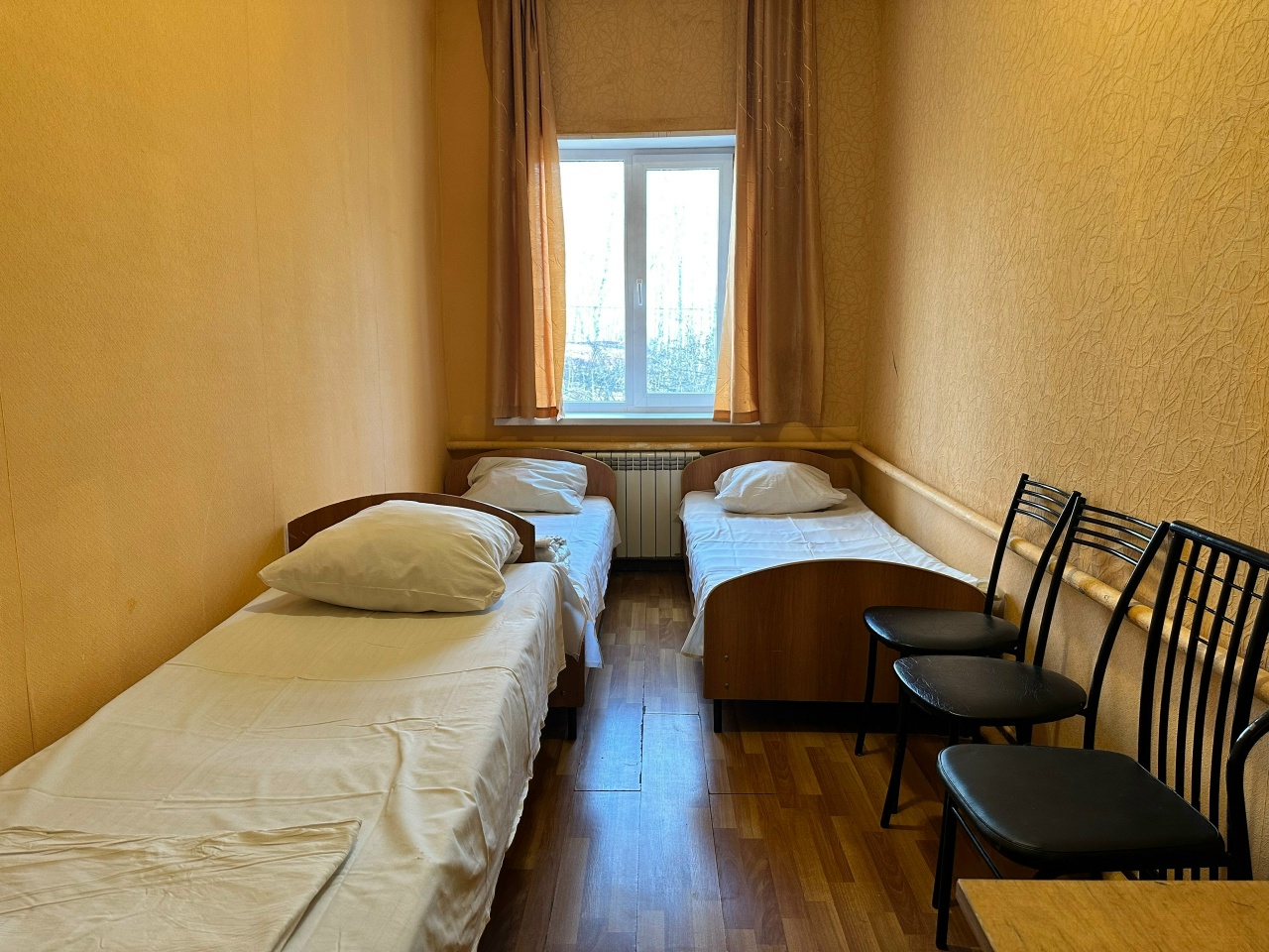 В номере: пять односпальных кроватей.Чайник, сан.узел, душ.